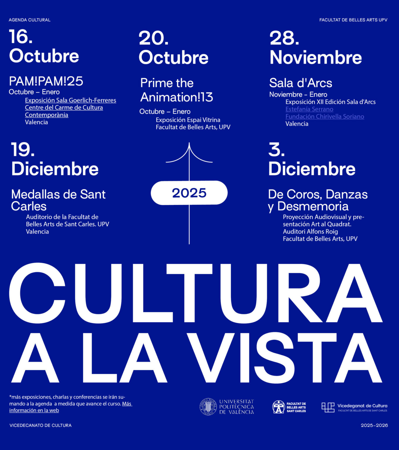 Comissariat: Laura Silvestre i José Luis Clemente L’exposició PAM!PAM! torna al Centre del Carme, el lloc on va arrancar este projecte en 2014 i on es va mantindre fins a 2016. Este retorn és especialment simbòlic perquè ens retorna al lloc on es va forjar esta iniciativa, com un retorn també al lloc que fora Escola de Belles Arts. L’exposició PAM!PAM!25 Projectes Artístics i Multimèdia s’incuba en el programa PAM! amb l’objectiu de visibilitzar i posar a la disposició de la societat valenciana el treball inicial dels jóvens artistes, després del seu pas per la Facultat de Belles Arts. En esta mostra, els 10 artistesLEER MÁS