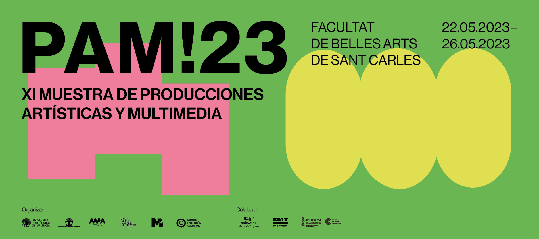 PAM!23 XI Mostra de Produccions Artístiques i Multimèdia és una iniciativa organitzada des del Vicedeganat de Cultura de la Facultat de Belles Arts de la UPV, destinada a l'alumnat dels quatre màsters oficials que s'imparteixen en aquest centre i que compta amb la col·laboració de la Fundació Hortensia Herrero. Des de la primera edició de PAM! l'any 2013, s'ha consolidat com una aposta per mostrar a la societat valenciana la producció artística més jove desenvolupada des de la universitat pública. D'aquesta manera, s'ha presentat la institució acadèmica no sols com a espai d'aprenentatge, sinó també com a lloc d'investigació i producció cultural que s'exposa a la mirada de l'interessat, i que ofereix un lloc per a la comunicació de l'art.