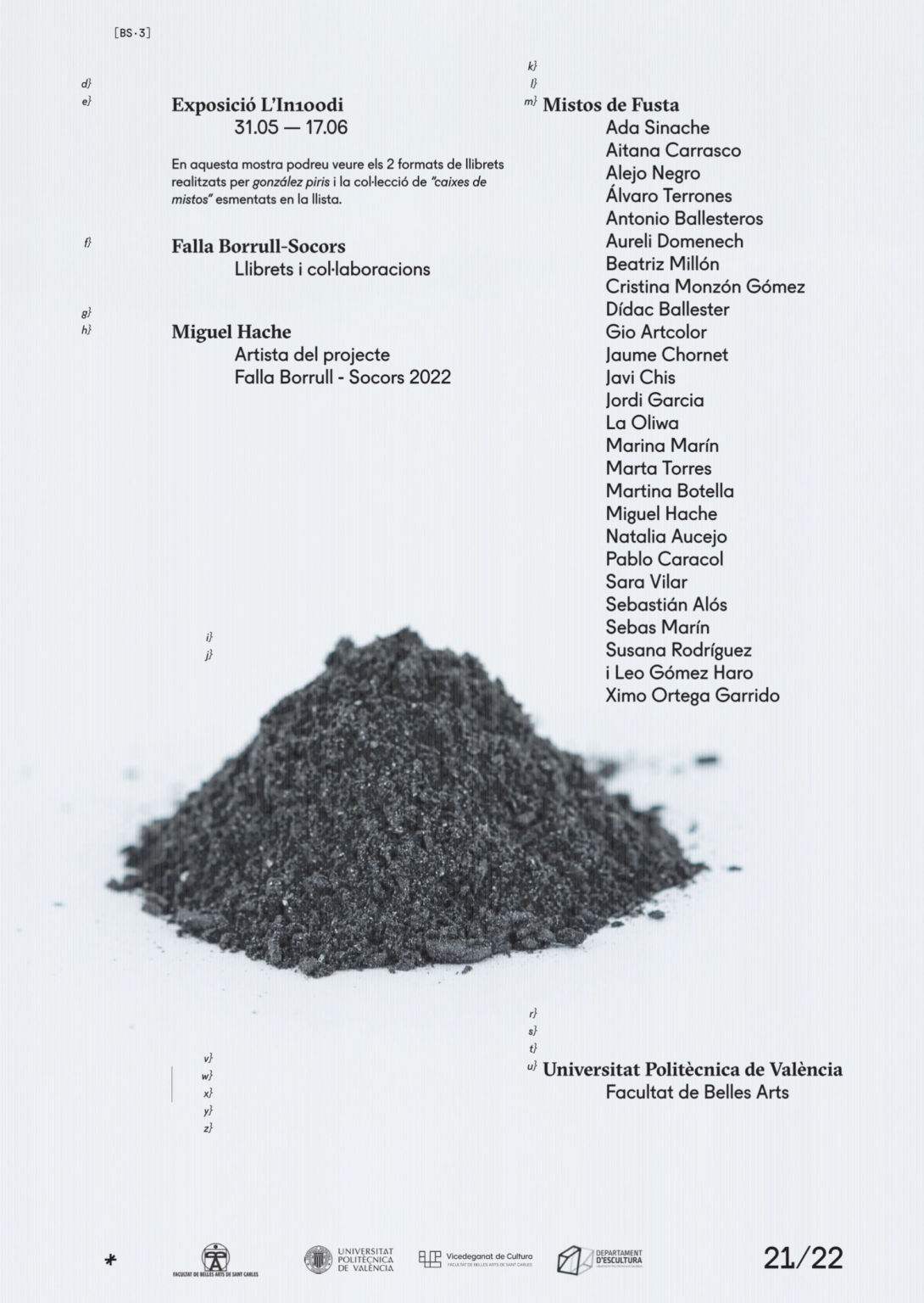 Esta exposición cuenta con una muestra relacionada con falla Borrull Socors de este año 2022 de la mano de Miguel Hache. En ella podréis ver los dos formatos de llibret realizados por González Piris y la “colección de interpretaciones” aplicadas en la conocida caja de cerillas de la golondrina.