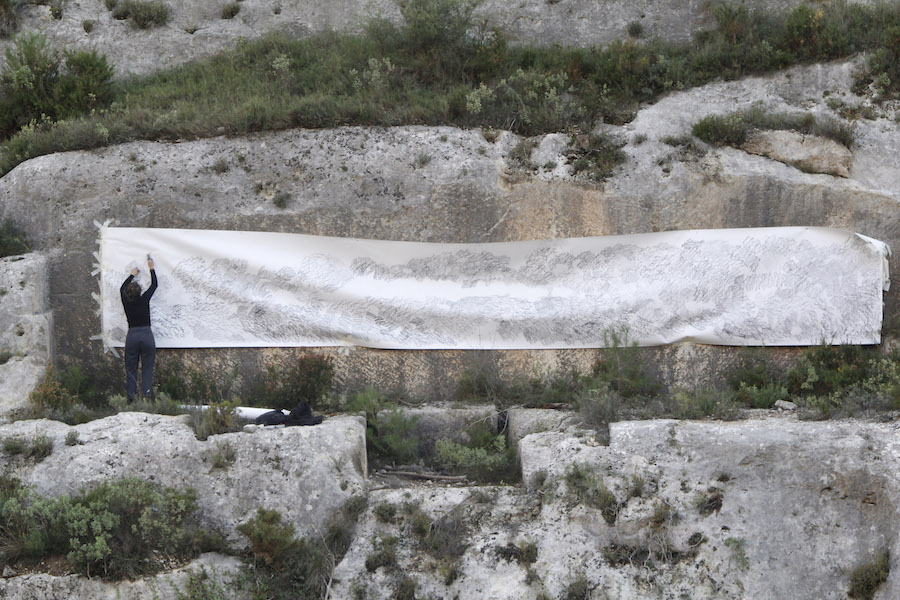 El suelo es el propio espacio de creación captando fragmentos que nos evocan a vistas aéreas, mapas y cartografías imaginarias, y es el ser humano quien a partir del tránsito interviene los fragmentos que hemos seleccionado anteriormente, para transformar y componer la pieza artística. En los recorridos también nos dirigimos hacia paisajes montañosos y, mediante el uso de la técnica del frottage, se pretende rescatar y preservar la historia y la memoria del lugar.
