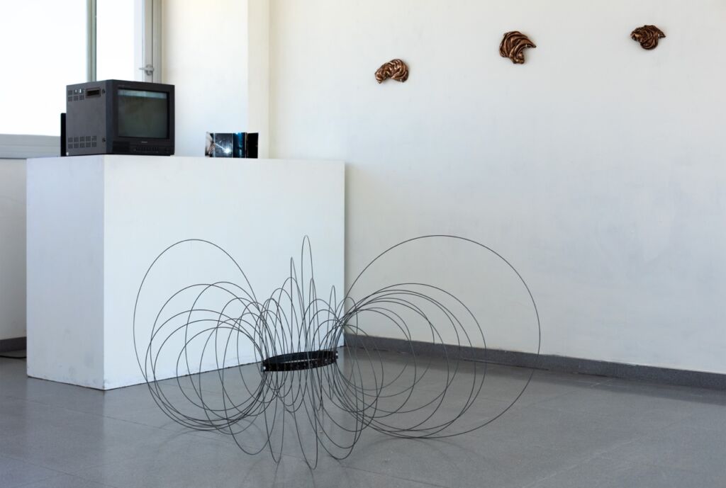El eje vertebrador del proyecto es el cuerpo: un cuerpo que baila, que produce, que resiste. En la obra central, un vídeo que se despliega en un monitor de videovigilancia —objeto simbólico de control, limitación y exposición— se intercalan imágenes de una bailarina en el contexto del ocio nocturno con tomas más íntimas y matéricas de esculturas realizadas por la propia artista. Estas esculturas, ejecutadas en materiales como el hierro, el bronce y la piedra, no solo remiten a procesos que requieren tiempo y maestría, sino que funcionan como metáfora de una “coraza existencial”: una armadura forjada en respuesta a las exigencias del contexto social y profesional contemporáneo.